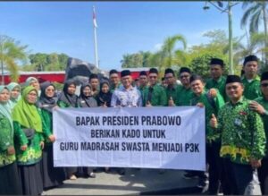 “Para guru swasta membutuhkan kepastian kesejahteraan. Kami berharap pemerintah membuka seleksi PPPK atau CPNS tanpa testing bagi guru yang sudah lama bertugas, memiliki sertifikat pendidik, dan sudah inpasing. Ini bukan sekadar tuntutan, tetapi kebutuhan untuk keberlangsungan profesi guru di Indonesia,” ujar Ustadz Asep.
